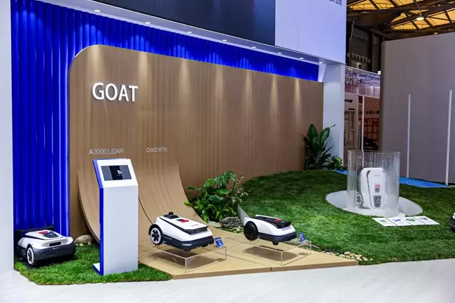 除地面与立面清洁产品外,科沃斯还带来了风靡欧美的割草机器人GOAT系列。其中GOAT A3000 LIDAR作为品牌首款登陆美国市场的户外机器人,融合RTK卫星定位、LiDAR与视觉导航技术,实现了完美绘测草坪,厘米级精准割草。这一系列的创新设计,使得GOATA3000 LiDAR成为了市场上最精确、最高效的智能割草机器人,也重新定义了相关行业的标准。
