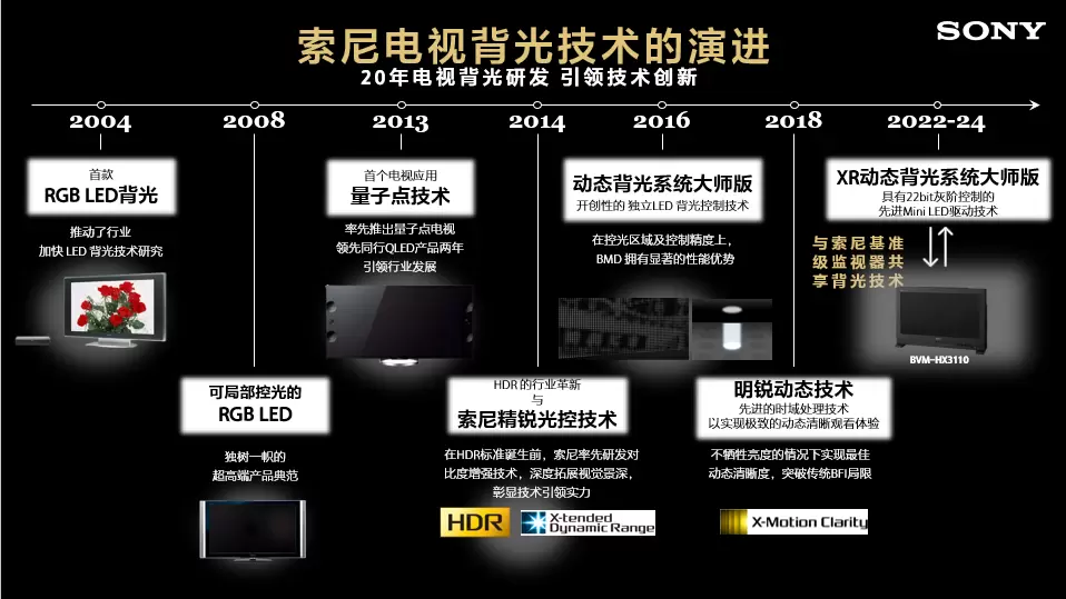 自20世纪60年代生产出享誉全球,以画质著称的“特丽珑“电视机以来,索尼在创新基因的驱使下,不断以各种前沿的显示技术引领行业的发展。作为RGB LED技术的开创者和引领者,索尼曾于2004年发表过全球首款RGB LED电视QUALIA 005,2008年发表第二代RGB LED电视X4500。除了先进的背光技术,索尼还拥有深厚的信号处理和色彩调教经验,比如特丽魅彩显示技术,实现对自然色彩的精密渲染,再现人眼在现实世界中感受到的逼真色彩。