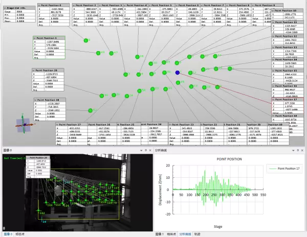 实验结果:DIC软件对塔架的不同点位进行离面方向的振动数据分析。