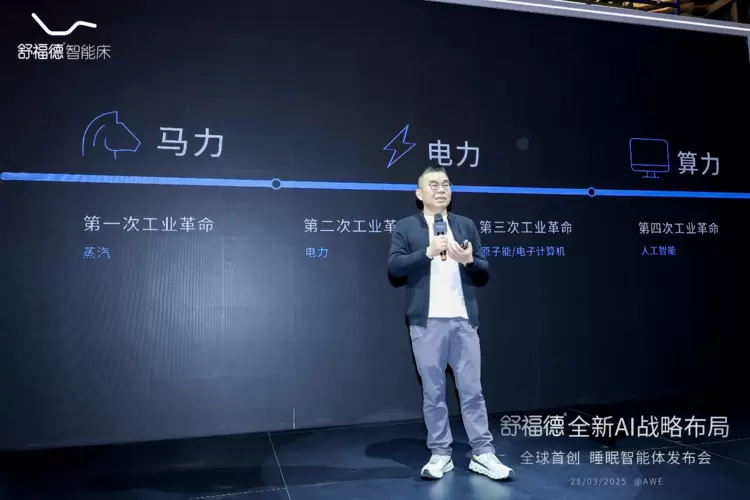 AI战略布局全球首创睡眠智能体发布会现场,麒盛科技总经理黄小卫指出算力革命不仅是技术迭代,更是社会运行方式的根本变革。通过云计算与AI技术的发展,人类可更高效得调取资源,舒福德AI小舒正在打破科技发展与人类睡眠之间的困境,真正实现科技以人为本。