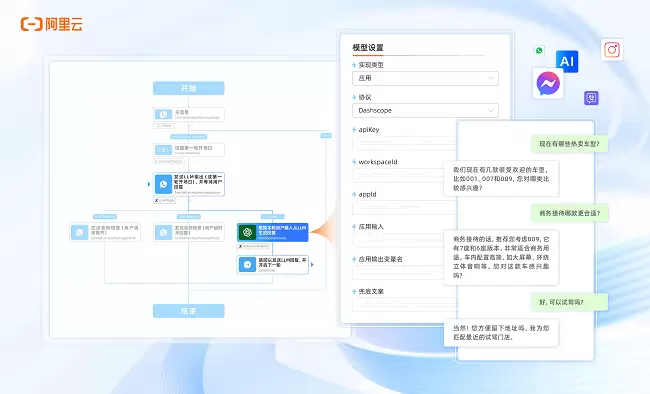 值得一提的是,就在本月,阿里云Chat App 宣布正式打通模型服务,可接入主流大语言模型、助理或智能体应用,并在 WhatsApp 的对话流程中完成嵌入,实现智能客服、智能导购、意向客户挖掘等场景快速落地,整个过程无需撰写一行代码。