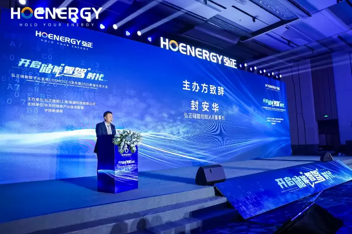 会议伊始,弘正储能董事长封安华对与会嘉宾的到来表示了热烈的欢迎。他表示,自弘正储能创立之初便将数字化基因刻入企业战略蓝图,以安全、高效、智能为锚点,深耕储能技术的研发与应用,已成为覆盖研发、生产、服务的全产业链生态构建者。未来的竞争不再是单一技术的较量,而是生态能力的整合,弘正储能希望以COSMOS2.0为基石,推动储能从“功能化设备”向“智慧化平台”跃迁,让每一度电的价值在数据流动中被精准捕获。