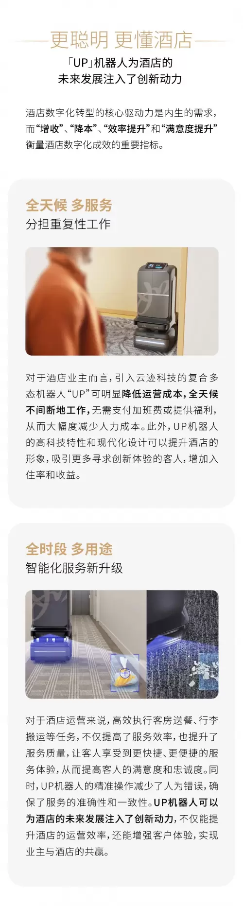 如家装备新升级!云迹科技酒店智能机器人UP 覆盖全时段全场景