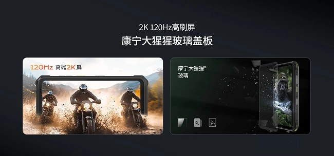 户外手机三防手机P2 Pro的屏幕采用了同档罕见的2K 120Hz高刷屏,分辨率、刷新率和色彩显示表现卓越。此外,屏幕还配备了康宁大猩猩玻璃盖板,抗划伤能力提升近3倍,而整机金刚缓震架构则实现了超抗摔性能,抗跌落能力提升约33%。