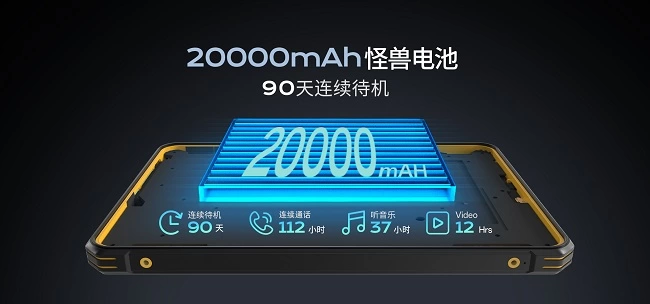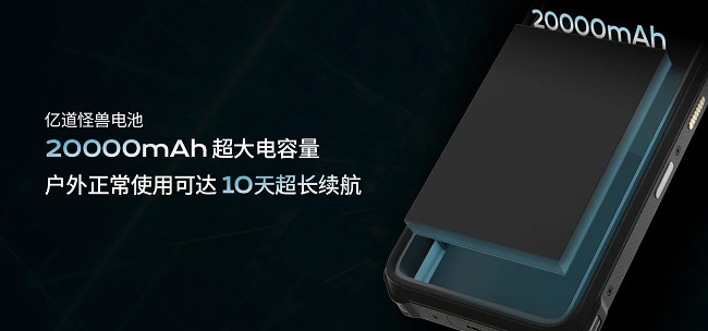 户外手机三防手机P2 Pro最引人注目的升级是其20000mAh的超大电池,这一电池容量相比P1增加了245%,是普通消费类手机的5倍。这意味着在户外正常使用时,P2 Pro可以达到10天的超长续航。此外,P2 Pro还支持33W超级快充和反向充电模式,能够在短时间内为设备充满电,甚至可以为其他设备提供充电支持。
