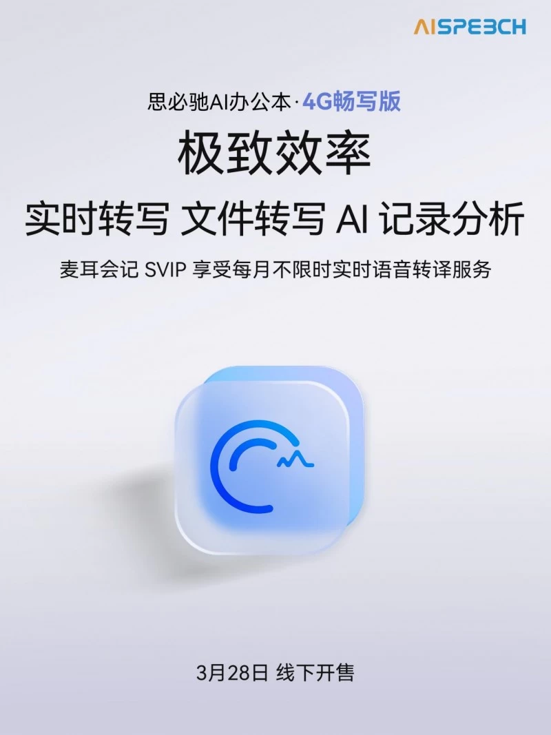 「思必驰AI办公本·4G畅写版」3月28日发布,高效办公与学习的新选择