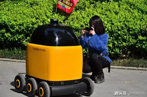苏宁自动送货机器人亮相:会自己乘电梯、叫门