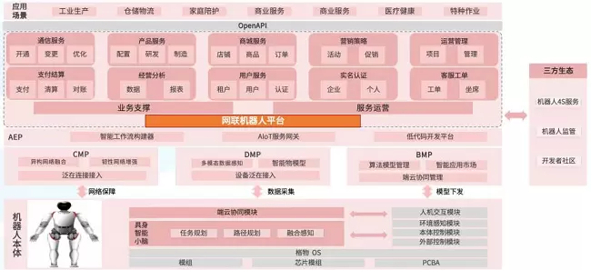 目前,该平台已成功打造泛在连接与多网络制式智能适配、机器人多协议适配、多模态感知数据融合分析、端云训推协同的机器人设备智能升级,以及机器人智能体构建和共性能力开放共享等核心能力体系,全方位赋能机器人产业蓬勃发展。