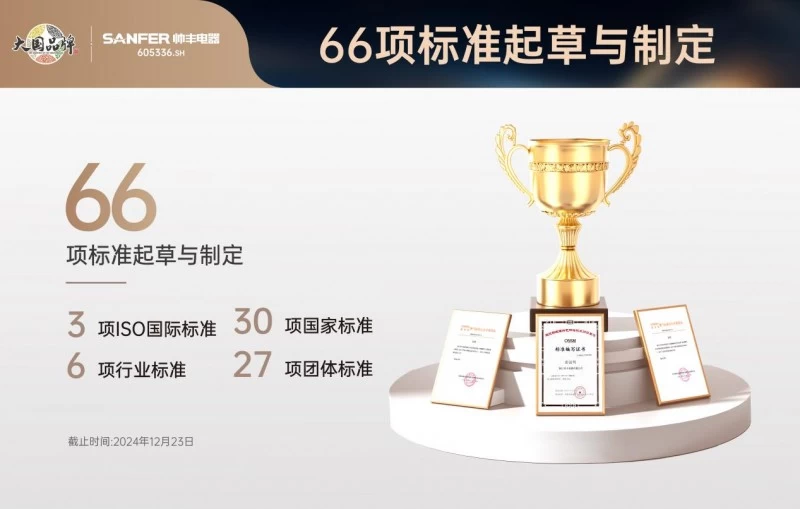 根据权威数据调研机构欧睿国际数据显示,帅丰蒸烤一体集成灶2019-2024连续6年全国销量领先。而根据帅丰官方资料显示,截至目前,帅丰累计获得408项专利技术,累计参与了包括3项ISO国际标准、30项国家标准、6项行业标准、27项团体标准在内的66项标准起草与制定,成为行业唯一一家同时参与国际、国家、行业三标准起草单位。这一系列数字背后,是帅丰对用户需求的深度洞察与技术创新的持续投入。