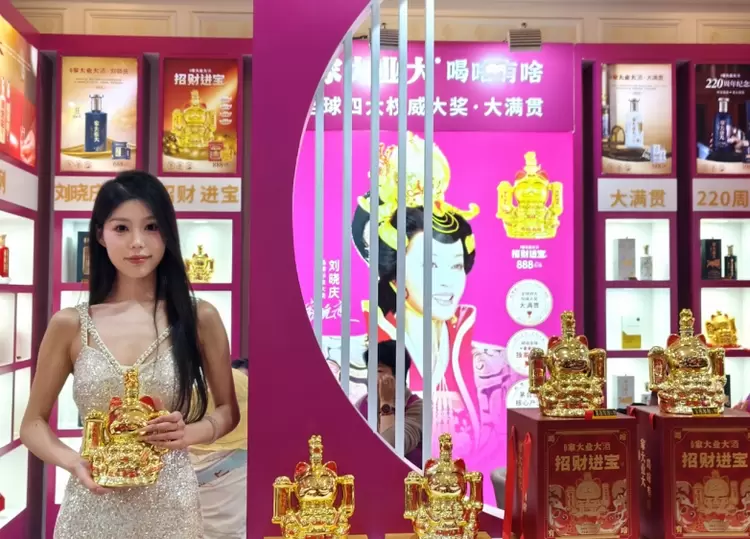 展馆内“喜庆红+财富金”主色调与招财进宝,恭喜发财、财神摆件等财富符号相互辉映,将“家大业大,喝啥有啥”的品牌基因融入每一处细节。