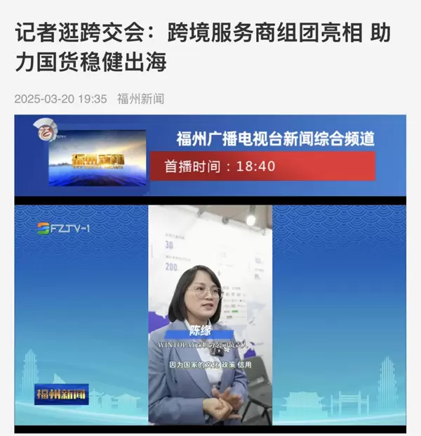 跨交会现场,WINTOPAY接受来自福州电视台记者的现场采访。WINTOPAY深圳分公司负责人Maggie Chen从支付视角,就海外支付环境及独立站支付痛点提出见解。她指出,各国支付、外汇法规各异,消费者支付偏好大相径庭,因此,在确保安全合规的前提下,适应新兴支付方式,提升款项周转效率,降低手续费和拒付风险,对出海企业持续增长至关重要。
