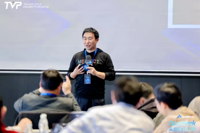 熵简科技联合创始人、腾讯云 TVP李渔进行《DeepSeek 时代的 AI 投研机遇、挑战与落地实践》的主题分享。