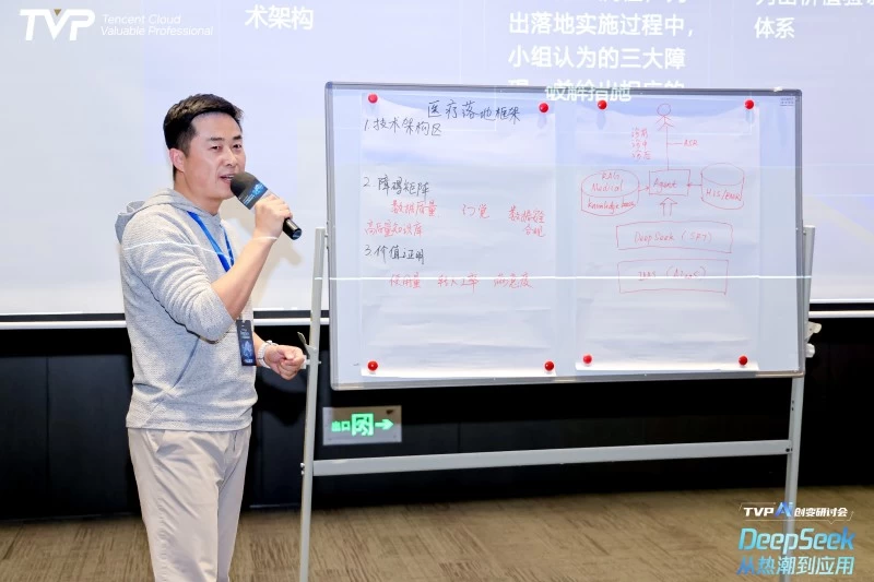 发言代表腾讯云TVP 蒋锦鹏表示,我们重点探讨在医疗领域如何落地 AI 应用,如何通过 AI 客服提升患者体验。系统架构设计覆盖患者就诊的诊前、诊中和诊后全过程,包括预问诊、导诊、检验、检查、解读及康复指导等场景。为了实现这一目标,我们设计一个基于DeepSeek的系统,该系统不仅包含一个支持语音交互的ChatBOT,还需要与医院的HIS(医院信息系统)和EMR(电子病历系统)打通,以获取患者的详细信息并提供个性化建议。此外,系统还需具备与真实世界交互的能力,如自动挂号等功能,确保流程的完整性和实用性。