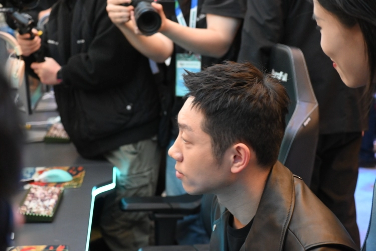 展台设计上,雷鸟通过沉浸式互动体验打破传统科技展的“静态陈列”模式:主舞台的《英雄联盟》水友赛使用雷鸟27U9显示器,搭配专业解说与coser互动,电竞氛围拉满;电竞体验区则让玩家自由试玩雷鸟32U8等多款新品,直观感受MiniLED背光与高刷性能的协同优势。而奥运冠军许昕的意外现身,更将这场科技秀推向高潮。
