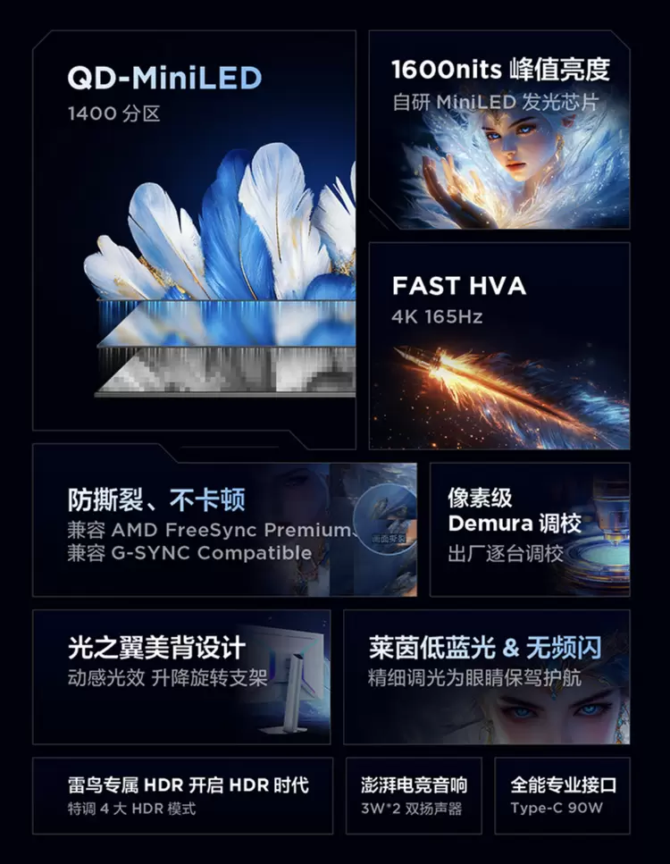 1.技术稀缺性:1400分区控光远超同类竞品(如某国际品牌32英寸产品仅768分区),叠加1600nits峰值亮度,实测暗场控光精度提升40%以上;
