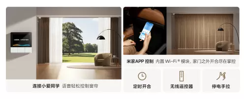 依托小米AIoT生态链的技术优势,米家隐藏式智能窗帘提供多元化的智能控制方式,带来更便捷的居家体验。用户可通过 “小爱同学” 语音操控一句话开启或关闭窗帘,也能借助 米家APP 远程管理,随时随地掌控窗帘状态。为满足不同用户的使用习惯,产品特别配备实体遥控器,让老人和儿童也能轻松操作。此外,还支持 自定义定时功能,可根据个人作息自动调节窗帘开合,减少日常重复操作。值得一提的是,其人性化设计让窗帘在断电时仍可通过手拉方式顺畅开合,确保使用无忧。