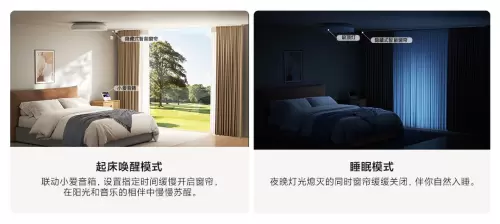 可与家中其他智能设备联动,如“起床模式”自动拉开窗帘,“观影模式”同步关闭灯光与窗帘;