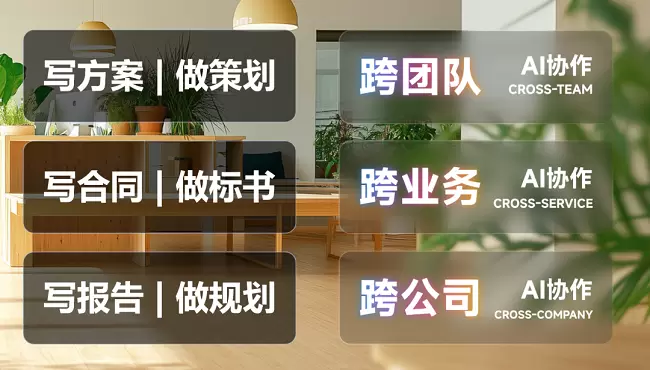 这样,一个可以跨团队、跨部门、跨业务、跨公司的通过AI协作的方式,一起写方案、做策划、写合同、做标书、写报告、做规划……