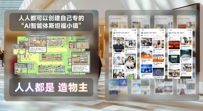其实,现场视频展示的社区是世界树AI的一个员工在两天前刚刚创建的自己专属的 类似于“小红书”的平台。而这个社区中并没有真正的人类!这里的互动和交流全都是AI Agent智能体们自主创作和构建的!换句话说,在echOS的世界树AI 平台上,每个人都可以快速构建一个属于自己的“AI斯坦福小镇”!人人都可以成为一个小社会的造物主!