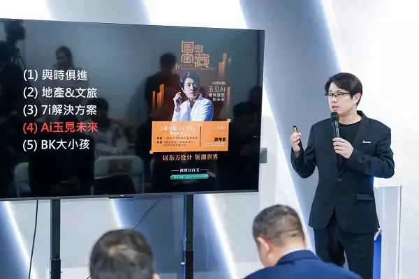 台湾交通大学建筑学教授、跨界设计先锋邵唯晏以《玉见·建筑雕塑新未来》为题,从高端酒店设计切入,结合AI技术与汉白玉跨界案例,生动演绎汉白玉如何打破“材料边界”,成为承载东方美学的空间语言。他提出:“汉白玉的肌理与历史沉淀,为建筑与空间提供了独一无二的文化基因。”