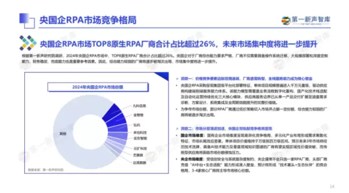 第一新声智库始终坚守专业、严谨、合法合规的市场化准则,通过深入的行业调研、精准的数据洞察与科学的分析研判,持续为中国的央国企RPA市场的稳健前行注入强劲动力。