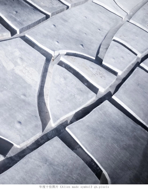摄影师 qb.pixels 的作品《Alien made symbol》获得年度十佳图片,他的作品记录下了意大利西西里岛的布里山脊。这些岩石岭给人一种未来且近乎科幻的感觉,画面中的人物提供了比例锚定,仿佛置身外星景观。评委储卫民认为:“这张照片之中岩石的纹理明暗交错,光影线条构筑出无与伦比的秩序美感。”