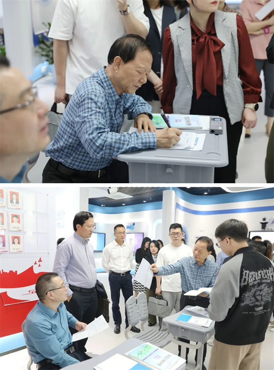 在授牌仪式开始前,华南师范大学人文社会科学高等研究院专家团队一行率先参观了宏途智慧展厅。在展厅内,专家团深入了解了智慧课堂、智慧教务、智慧环境等数字化校园板块的核心产品与应用场景。在宏途Z致学智能手写笔互动体验展区,专家学者们对宏途智笔的实时数据采集与动态批改功能表现出浓厚兴趣,专家们亲自体验宏途智笔书写与系统反馈的联动过程,并就技术细节与教育场景适配性展开讨论。