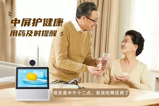 中屏AI守护功能可智能检测指定成员在监护时间内是否活动,如果发生父母早上没有按时出现在客厅等异常情况,用户就能立刻收到告警信息。联动健康手环/手表、血压计、血糖仪等智能设备后,AI中屏可将检测数据保存在云端,方便用户及时了解父母健康状况。此外,AI中屏还可设置“用药提醒”,提醒家中长辈定时服药,外出游玩也安心。