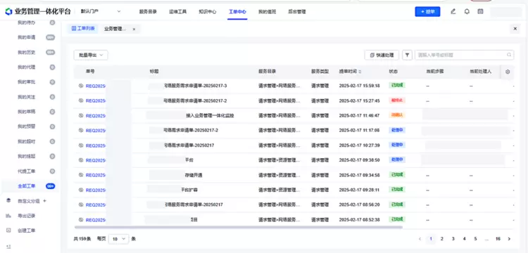 构建IT服务管理平台,提供完整的IT服务管理流程和服务目录。通过请求、事件、问题、变更、知识等流程管理服务,实现对IT服务全生命周期的管理和监控。平台支持与自动化执行、配置管理系统、集中告警系统的数据交换和功能联动,满足流程功能自定义扩展需求。系统共上线8个流程,运行期间产生了20+条工单。