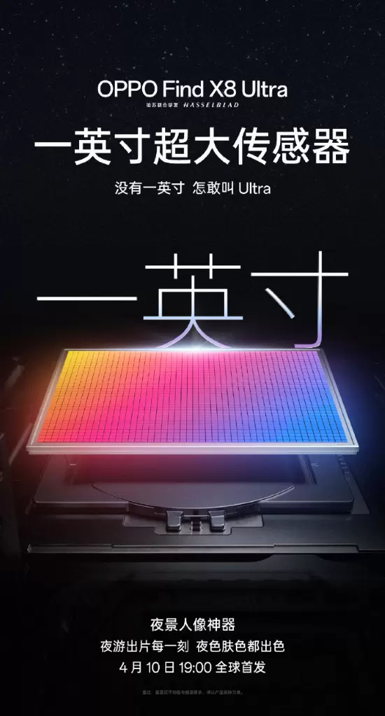 OPPO今日宣布,作为OPPO年度影像旗舰之作,Find X8 Ultra将搭载行业领先的一英寸超大底传感器,以突破性的硬件规格,重新定义手机影像创作边界,为全球用户带来"夜色肤色皆出色"的殿堂级夜景人像拍摄体验。