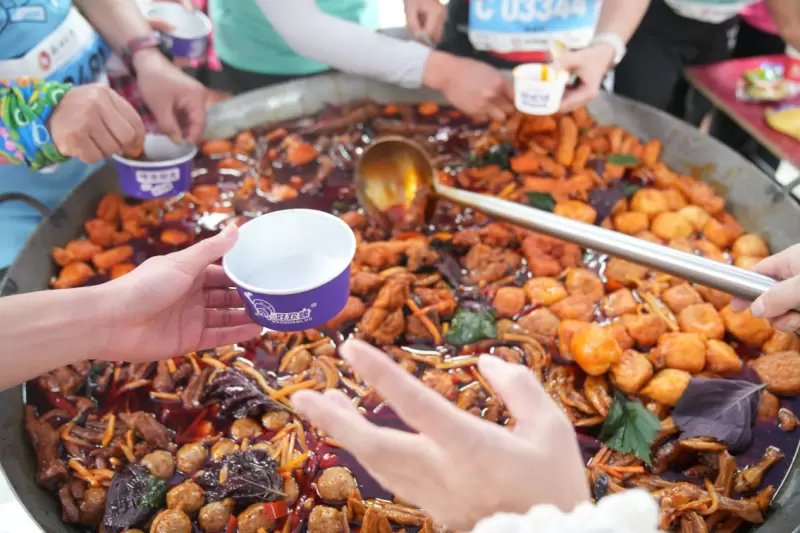 作为柳州马拉松暨警察马拉松金牌赞助商,好欢螺不仅为赛事注入本土品牌的力量,更以“热辣”为纽带,串联起城市的味觉记忆与运动激情。赛道补给站的定制款好欢螺螺蛳粉三明治等美味,以碳水配碳水的新鲜让奔跑的疲惫瞬间化作舌尖的酣畅,特色的“欢螺柳州第一锅”、螺蛳粉蛋糕成为各位跑者难忘的龙城记忆。