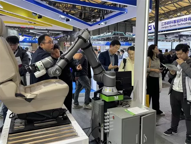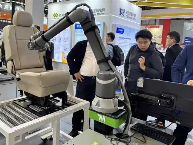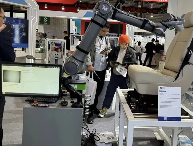 在慕尼黑电子生产设备展(Productronica China)的现场,达明机器人合作伙伴所展示的汽车座椅外观检测应用,充分彰显了视觉飞拍技术在外观瑕疵检测方面的优势。