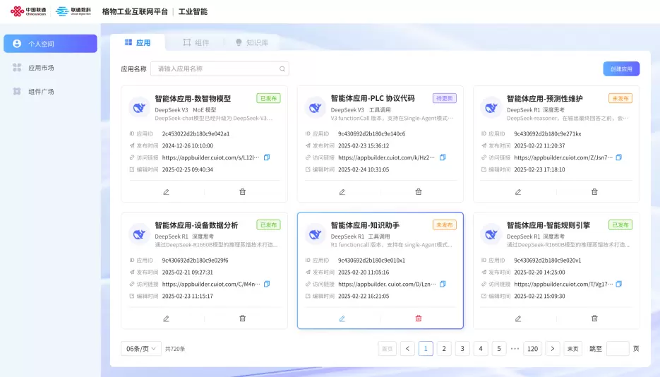 在省公司层面,山东联通、福建联通等全面接入DeepSeek,完成自有大模型应用产品迭代升级,并在智慧工业、智慧农业、教育等众多领域落地,融合自身网络、技术、资源等优势,推动人工智能与实体经济深度融合。山东联通还依托能力开放平台、智能体开发平台、原子能力,实现了模型管理与模型服务调用、DeepSeek多版本模型接入、RAG引擎、Agent工作流编排,以及从内外部垂直产品到行业大模型的高效转化与应用拓展。
