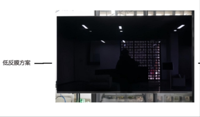 黑曜屏则可以说是目前屏幕抗反光技术中的最好解决方案。通过采用内外双层纳米级LR低反膜,将反光率压低至1.28%,黑场表现是普通屏幕的四倍,堪称屏幕技术中的"爱马仕"。有了黑曜屏,意味着即使在明亮的客厅环境中,也能享受到深邃的黑色。
