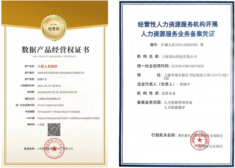 羽山数据始终秉持权威、合规、安全的理念,全力构建合规数据的流通生态。持有人民数据颁发的《数据产品经营权证书》及《人力资源服务许可证》等,对标欧盟 GDPR 通用数据保护条例,严格遵循《个人信息保护法》等法规。背调环节,严格遵守授权流程,支持电子授权及纸质授权两种方式。确保所查数据安全合规。在技术创新上,羽山数据采用隐私计算算法,确保明文数据不出库的情况下完成数据核验。