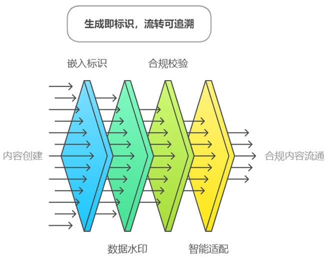 ●自动化合规校验:构建AI驱动的合规校验系统,实时检测显式标识格式(位置/内容/形式)与隐式标识完整性,通过规则引擎自动触发预警机制,并生成可追溯的审计日志链,支持监管机构穿透式核查。