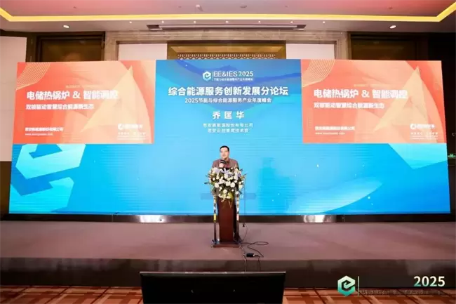 在综合能源服务创新发展分论坛上,思安云创首席技术官乔匡华发表主题演讲《电储热锅炉×智控系统丨双核驱动智慧综合能源新生态》,重磅发布新一代电储热锅炉产品。该产品以“绿电消纳+智慧调控”为核心,创新整合低谷电力、清洁能源等多元电力资源,通过储热系统实现热能高效存储与蒸汽按需供应,具备以下创新优势: