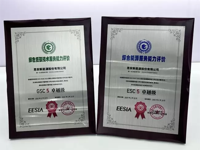 ·综合能源服务能力评价:思安新能源获评ESC 5卓越级(最高等级)。