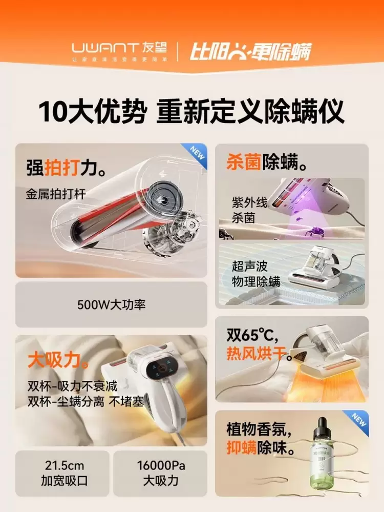 2025 年,在竞争激烈的除螨仪市场中,UWANT 友望脱颖而出,凭借技术创新、极致清洁以及人性化体验三大核心优势,稳坐行业头把交椅,成为销量冠军与口碑王者。其产品凭借卓越性能与创新技术,重新定义了 “高效除螨” 标准,在市场上引发热烈反响。