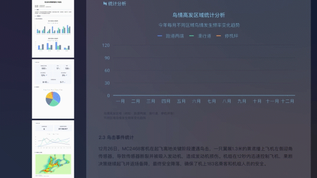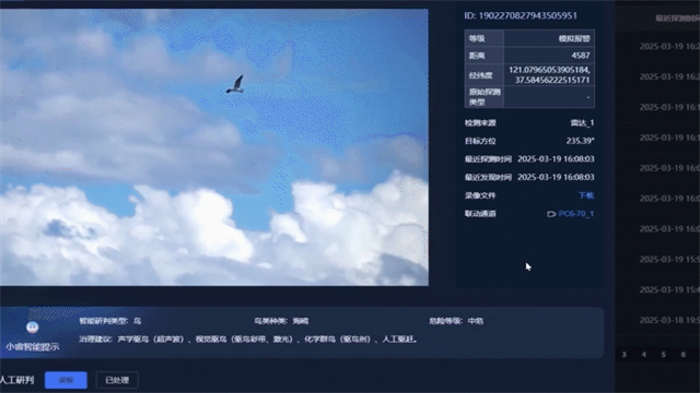 不断的数据反馈和学习将自动生成鸟类活动热力图和数据分析图等报告,助力驱鸟作业时段与路线优化工作开展。