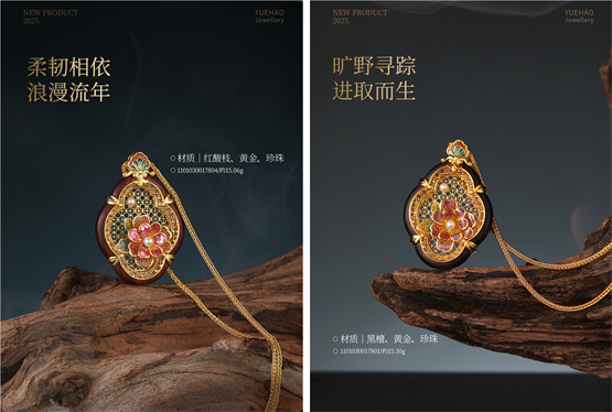 粤豪珠宝“金镶木”工艺突破了传统珠宝设计材质边界。在发布的系列新品中可以看到,金与木两种材质不只是简单的拼接,而是通过粤豪的“金镶木”工艺,达到近乎完美的融合状态。