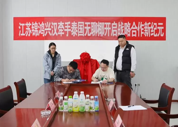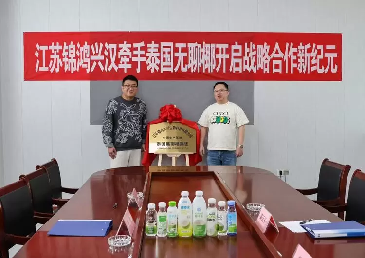 2025年3月28日,中国沭阳 - 泰国领先椰子产业集团无聊椰公司与江苏锦鸿兴汉生物科技有限公司正式达成战略合作,双方将共同打造国内规模最大的现代化椰类产品生产基地,为中国椰子水产业注入新的发展动力。