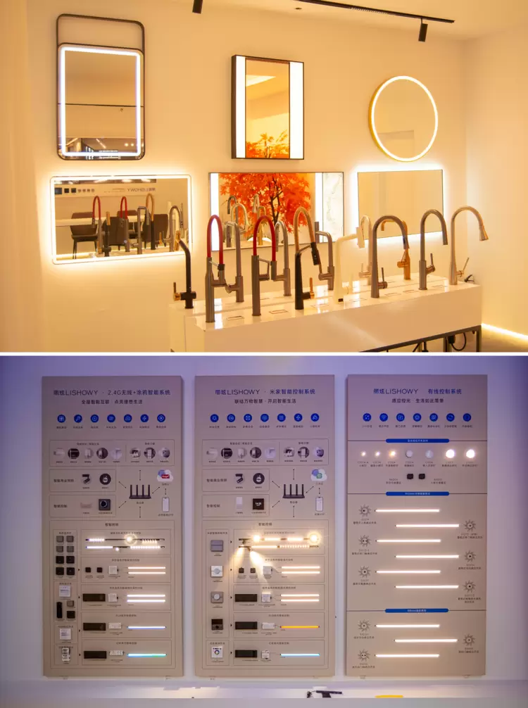 同时,还展出了涂鸦/米家智能照明控制系统,实现全屋灯光场景智能联动,让生活更舒适贴心。丽炫还推出了智能卫浴镜、柜体磁吸轨道灯系列以及电源等产品,满足客户不同使用需求。