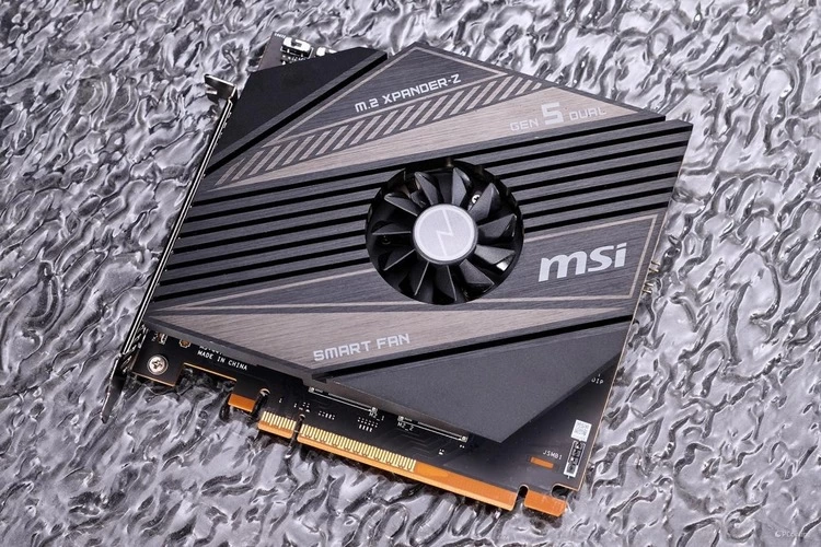 本次测试中,由三星9100 PRO PCIe 5.0 固态硬盘将在微星M.2 Xpander-Z Gen 5扩展卡上进行测试,该扩展卡接口标准为PCIe 5.0 x8,PCIe 5.0通道均为处理器分配而来,可以完全满足两个PCIe 5.0 x4 NVMe M.2 固态硬盘对高带宽的需求。