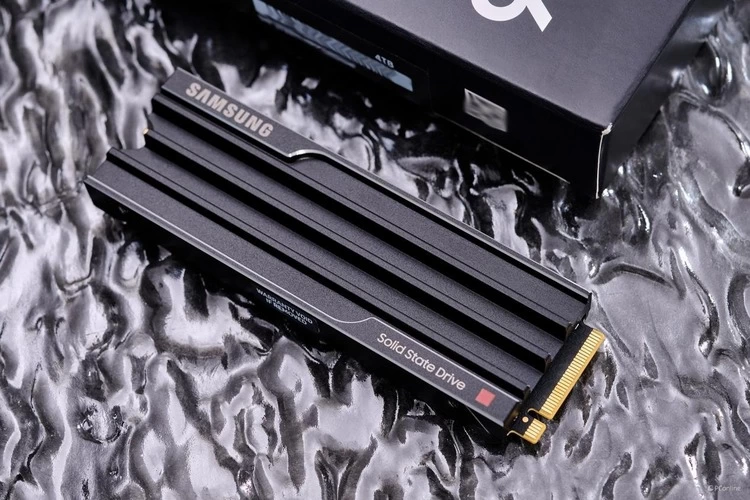 三星9100 PRO PCIe 5.0固态硬盘散热马甲版整个固态硬盘被金属材质的散热马甲所包裹,其内侧外围内凹槽的设计提升了产品的散热性能,而外围经过CNC精细边缘处理,进一步增强了固态硬盘的视觉吸引力。