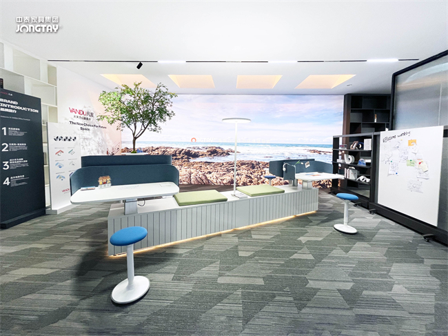 本次展会推出的“混合办公场景方案”,中泰通过模块化产品矩阵与场景化交互方案,为高效办公贡献“中泰智慧”。该方案重新定义了新时代的办公空间价值,打破了传统办公空间的局限,实现了办公空间的高效利用和灵活转换,让办公空间真正成为激发创造力、提升效率的价值载体。