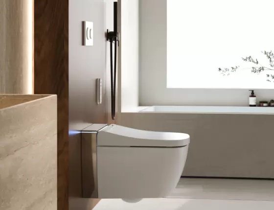 吉博力Spina Square滨娜方款智能挂厕的经典悬浮设计,结合水电全隐藏技术,告别了管线外露与卫生死角。
