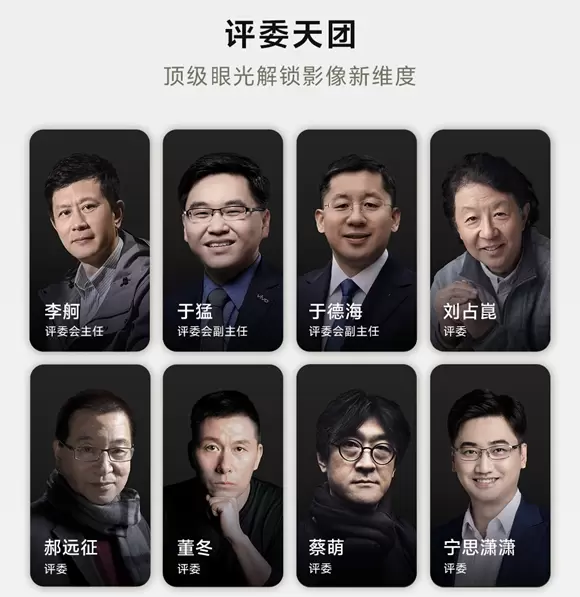 为确保专业权威,首届中国手机摄影大展特别邀请中国摄协主席李舸领衔,联合中国摄影家协会分党组成员、副秘书长于德海先生和vivo副总裁、影像副总裁于猛先生,及多位中国摄协专家,包括:刘占崑先生,郝远征先生,董冬先生,蔡萌先生,宁思潇潇先生组成专家评审团。