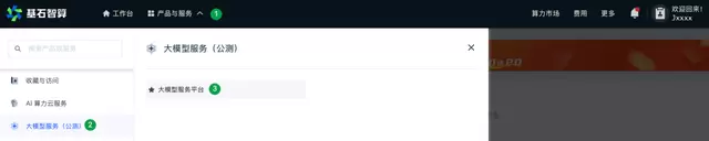 2.在顶部导航栏,选择产品与服务 > 大模型服务 > 大模型服务平台。