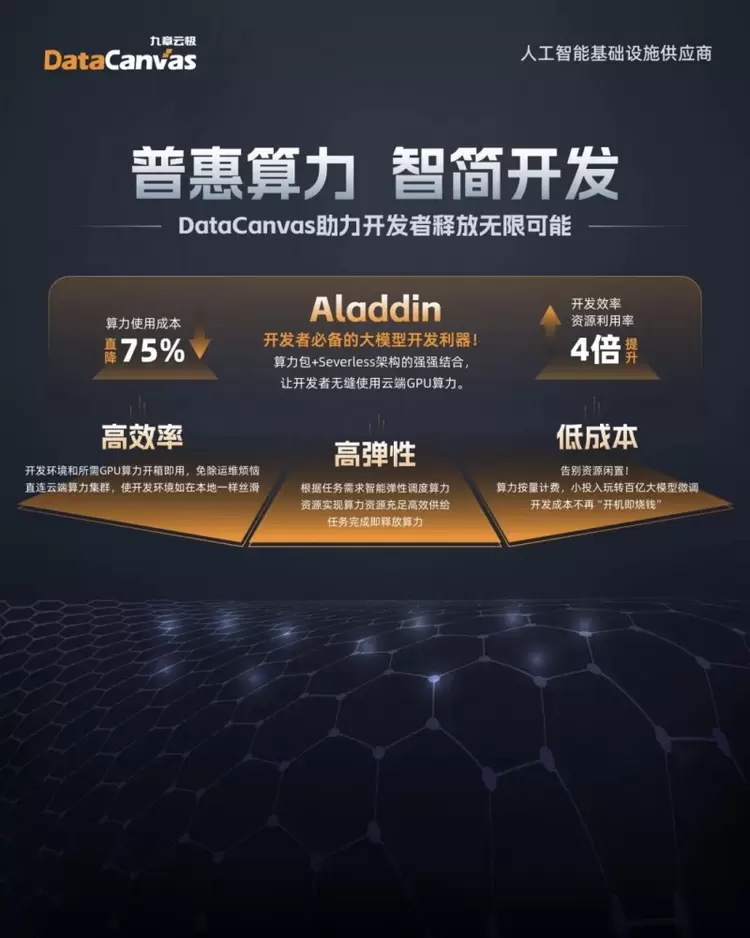 九章云极DataCanvas此次展出的大模型开发利器Aladdin,深度融合算力包与Serverless架构,有效实现“本地化开发环境与云端算力”的无缝协同。Aladdin直连弹性容器集群,开发者可一键调用AlayaNeW云端GPU算力,免运维完成远程调试、分布式训练及微调。其AladdinServerless架构支持算力毫秒级动态伸缩,按实际计算时长计费,空载成本清零;通过智能调度与优化集群GPU计算资源,Aladdin让算力使用成本直降75%,为具身智能行业提供高性价比开发范式。